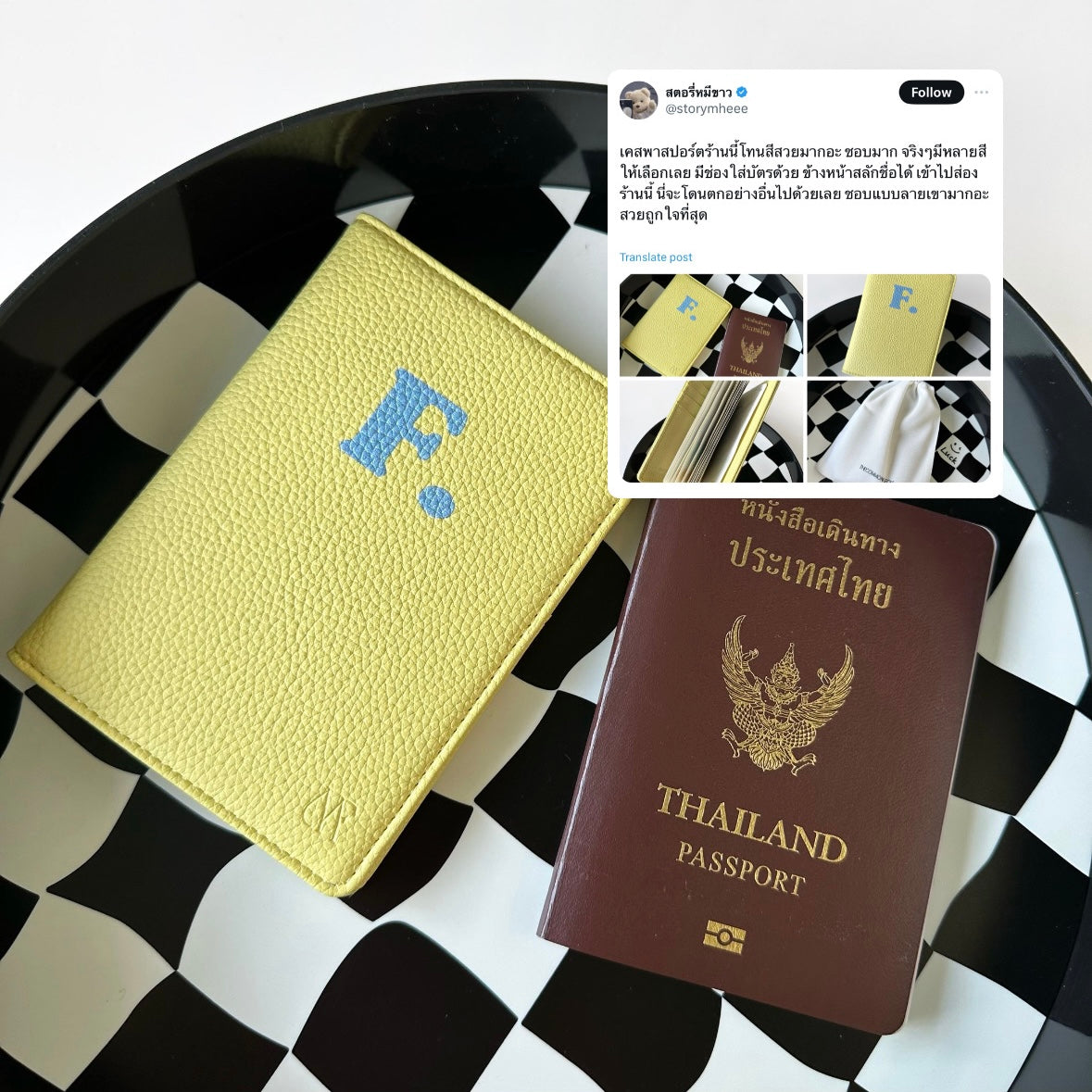 "เคสพาสปอร์ตร้านนี้โทนสีสวยมากอะ ชอบมาก จริงๆมีหลายสีให้เลือกเลย มีช่องใส่บัตรด้วย ข้างหน้าสลักชื่อได้ เข้าไปส่องร้านนี้ นี่จะโดนตกอย่างอื่นไปด้วยเลย ชอบแบบลายเขามากอะ สวยถูกใจที่สุด." - สตอรี่หมีขาว