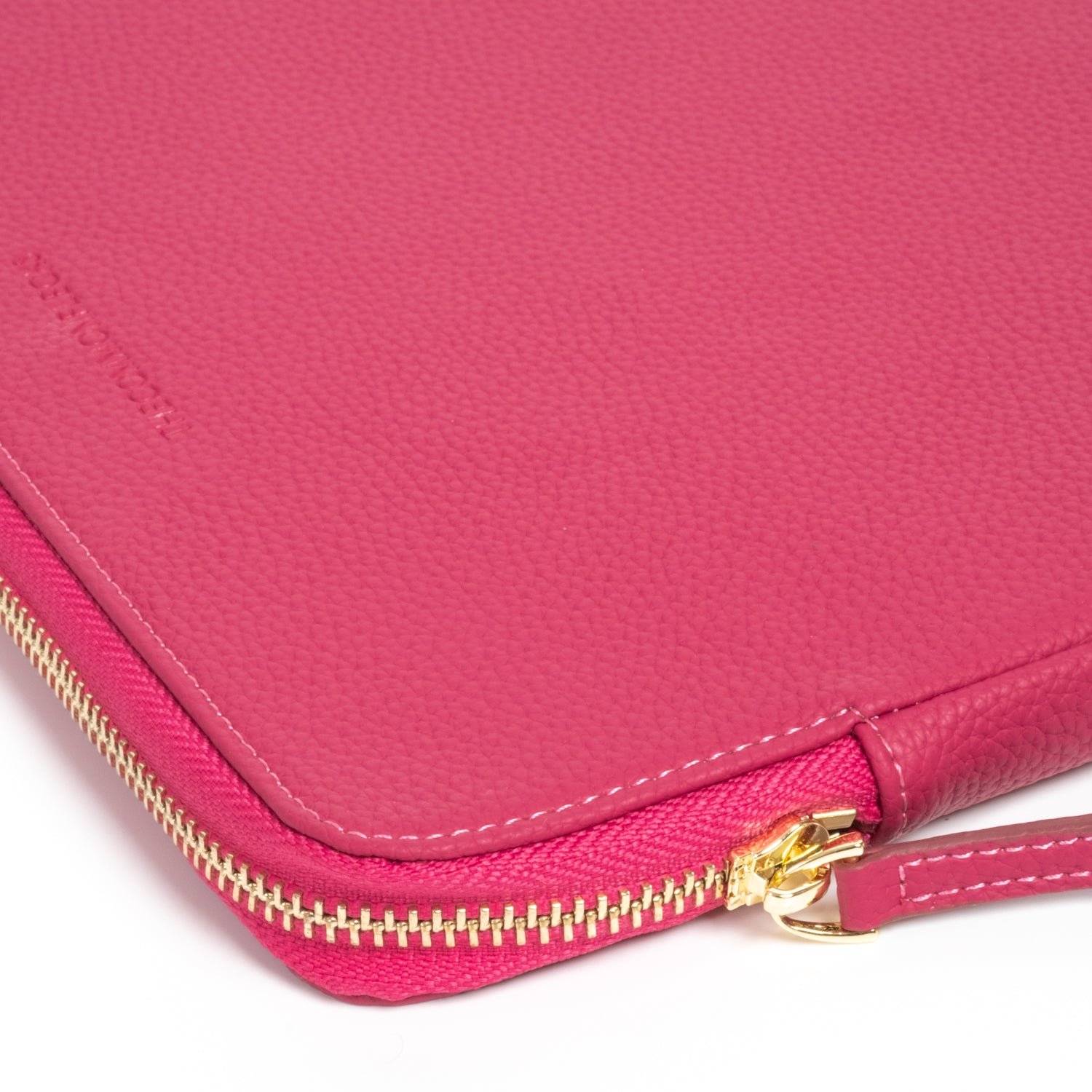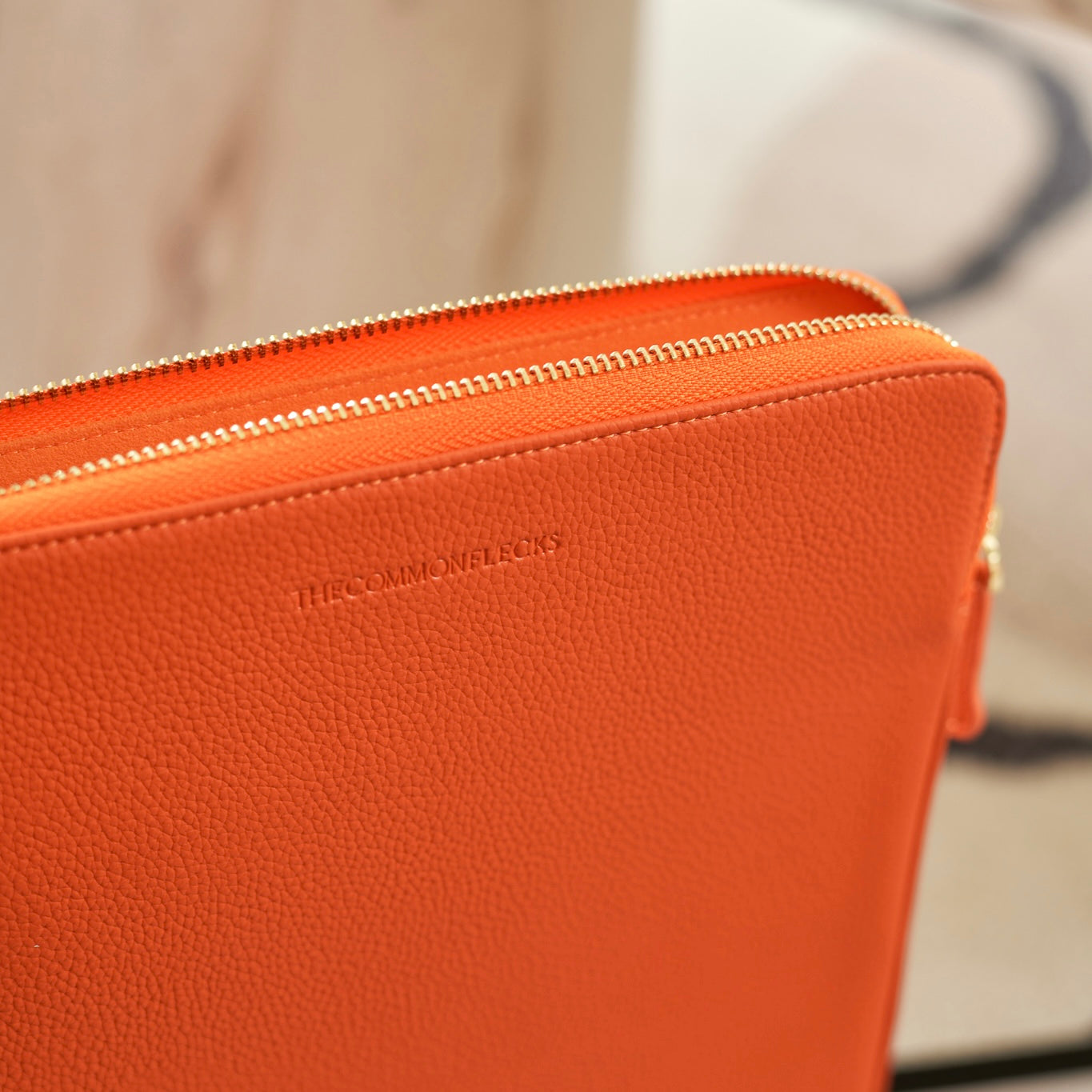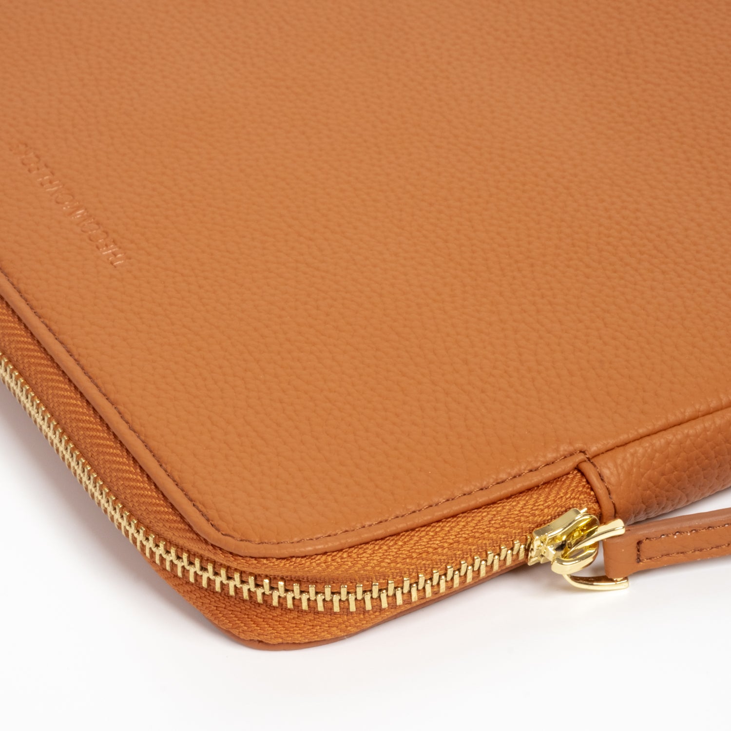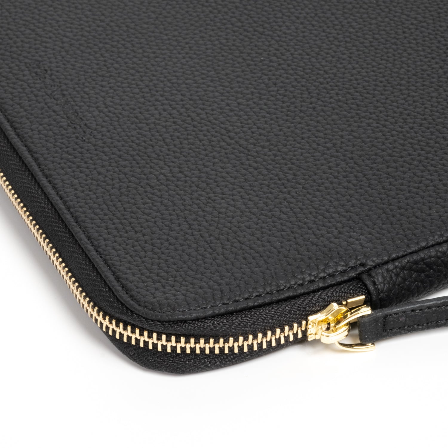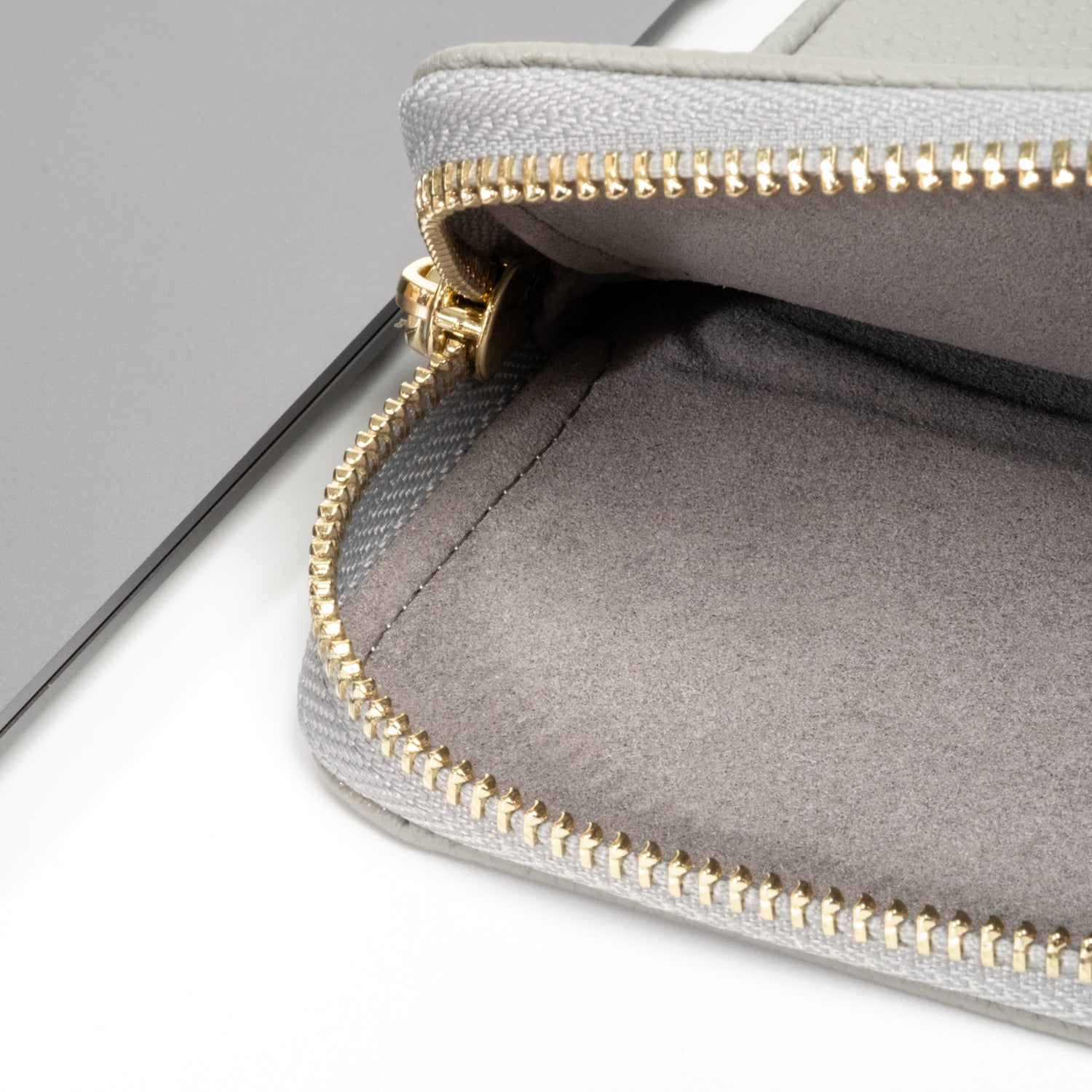 - Secure luxurious light gold hardware and padded leather zipper pull
