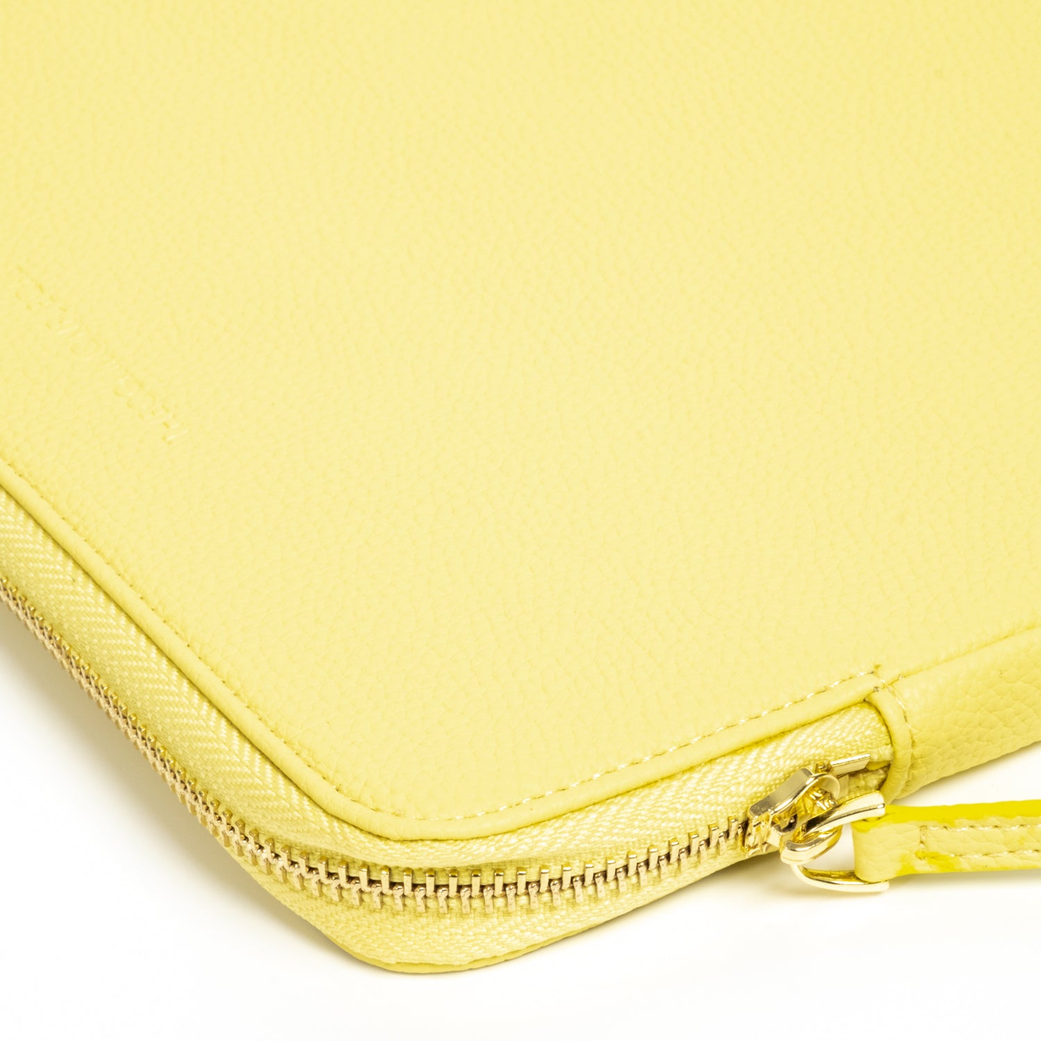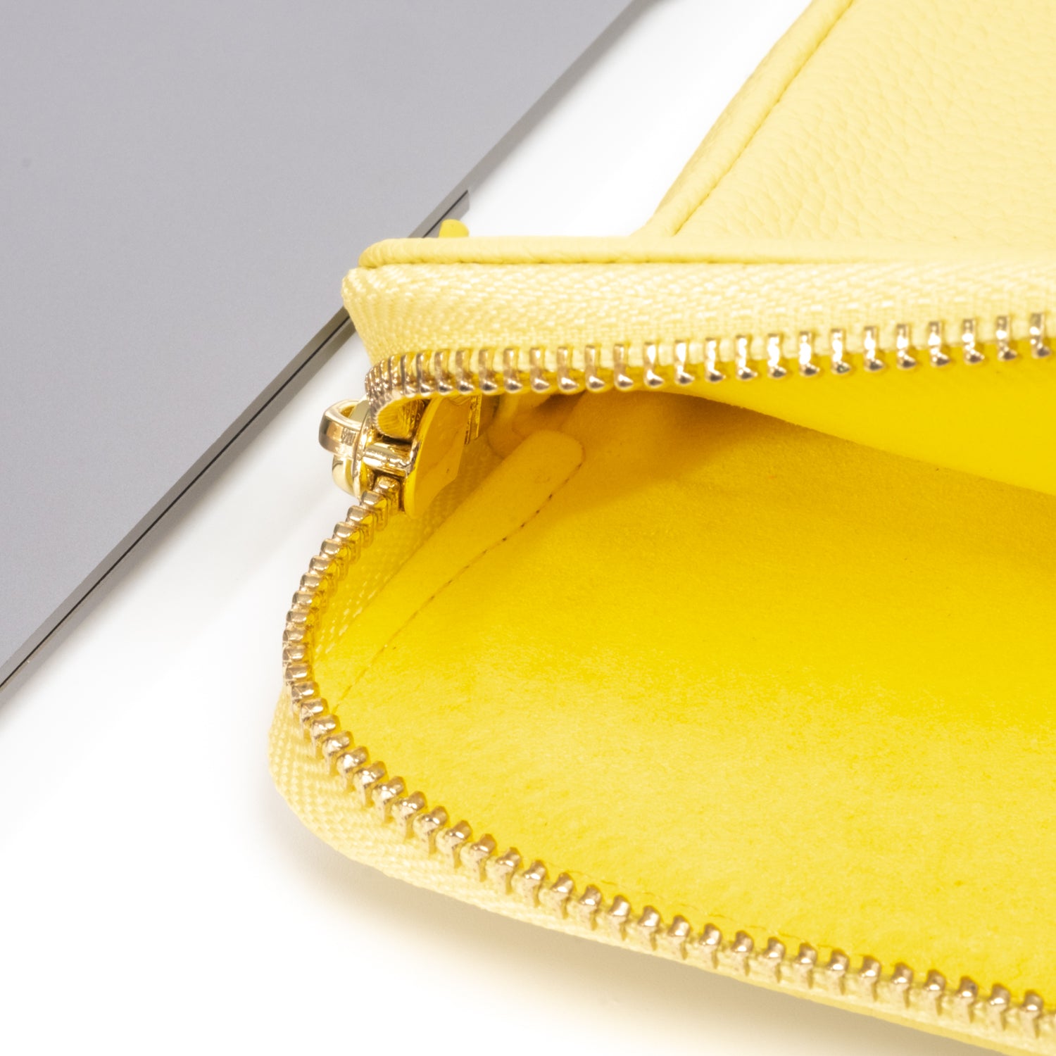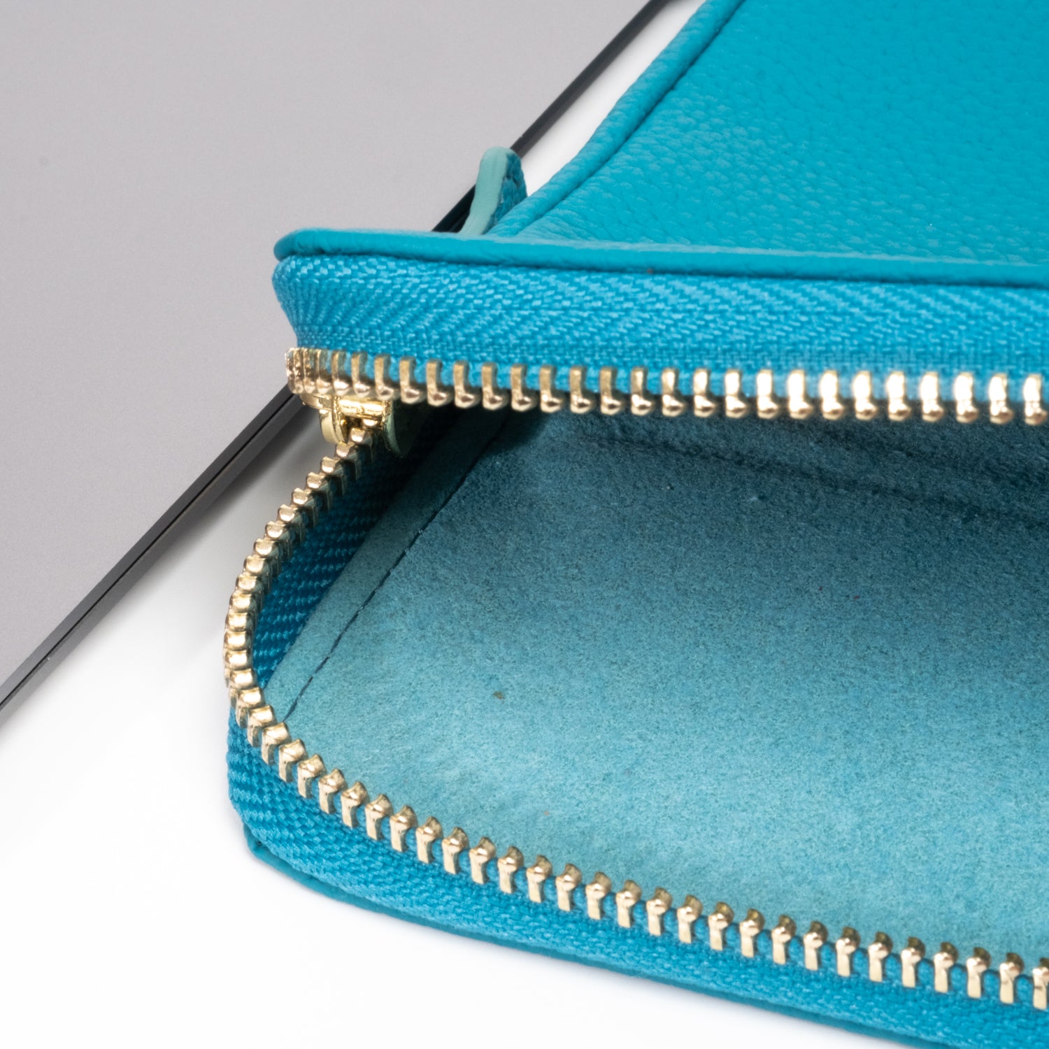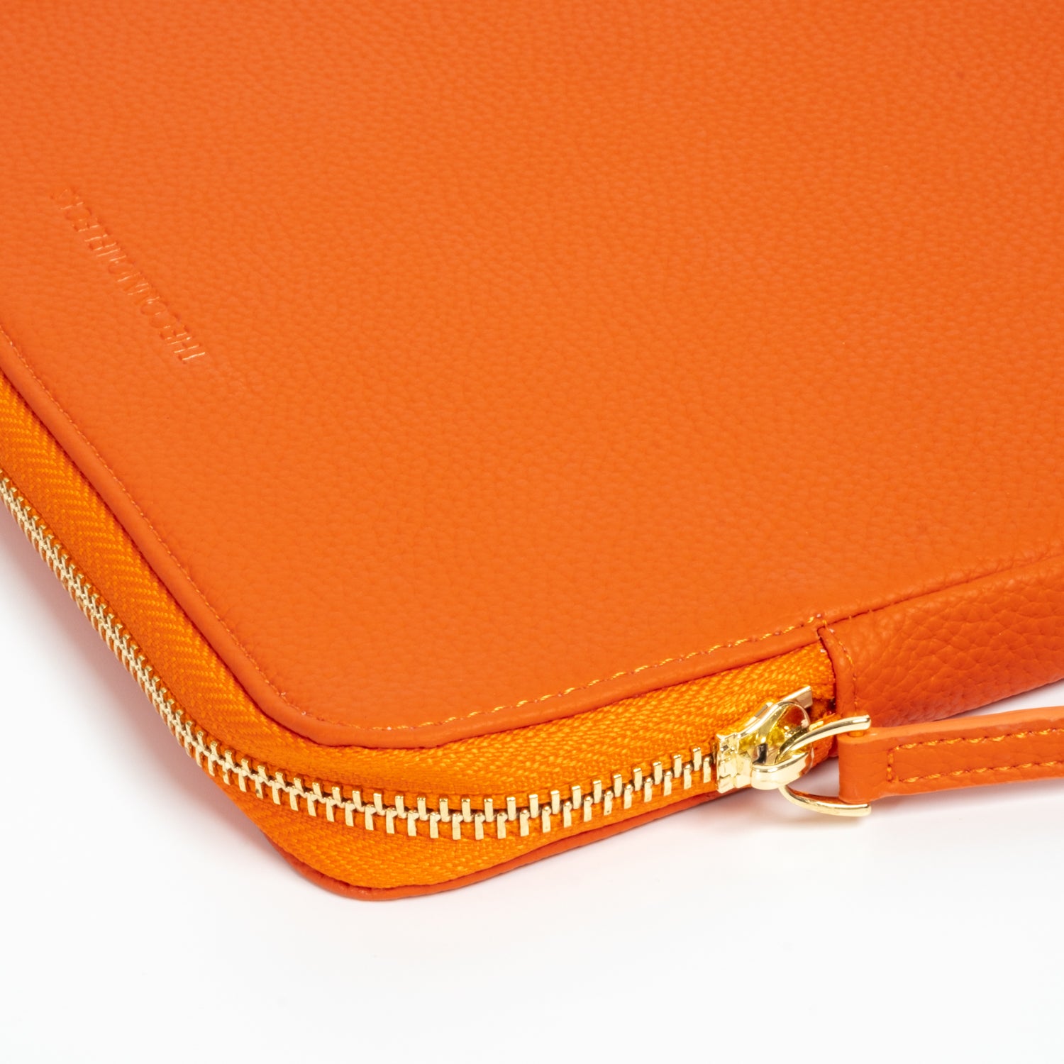 - Secure luxurious light gold hardware and padded leather zipper pull