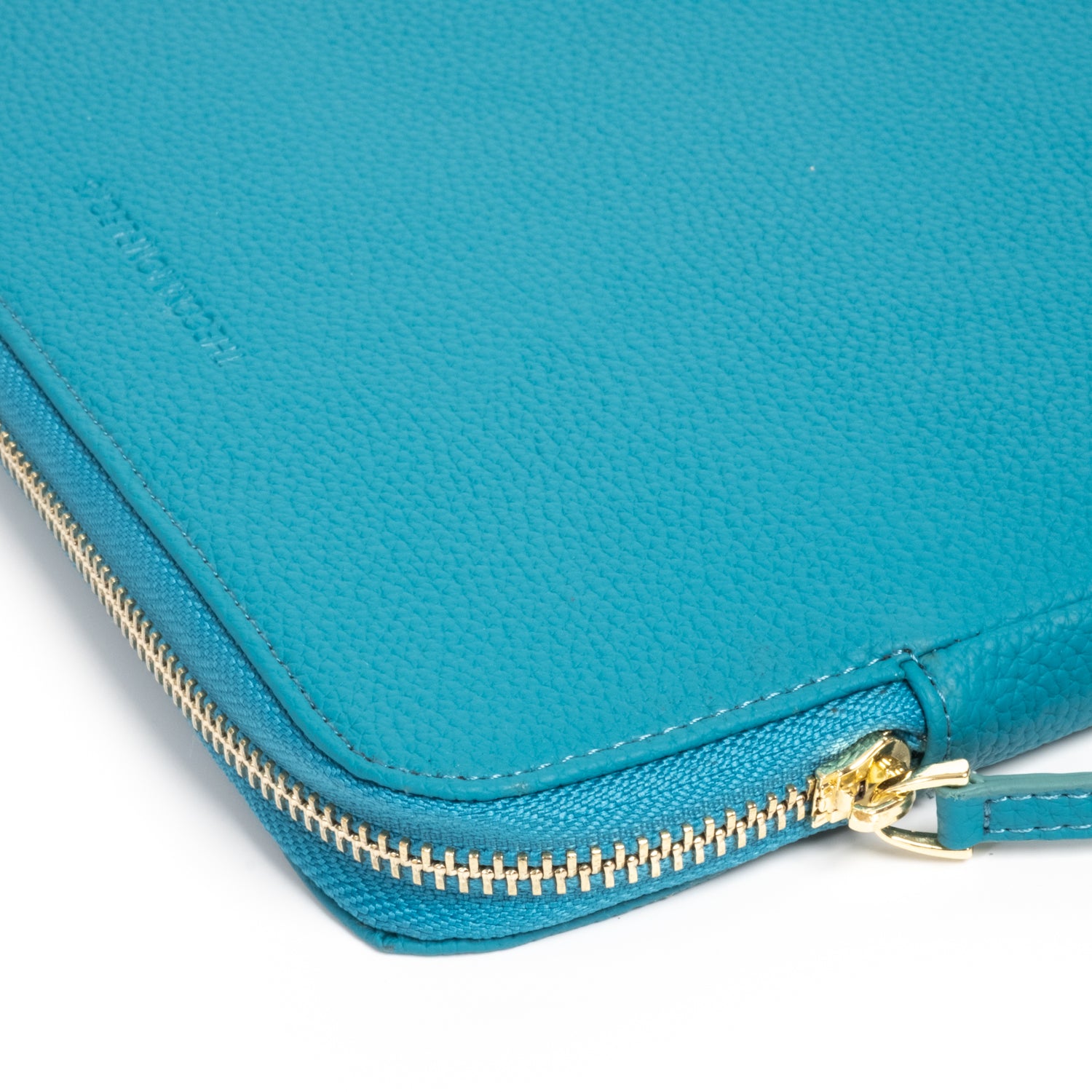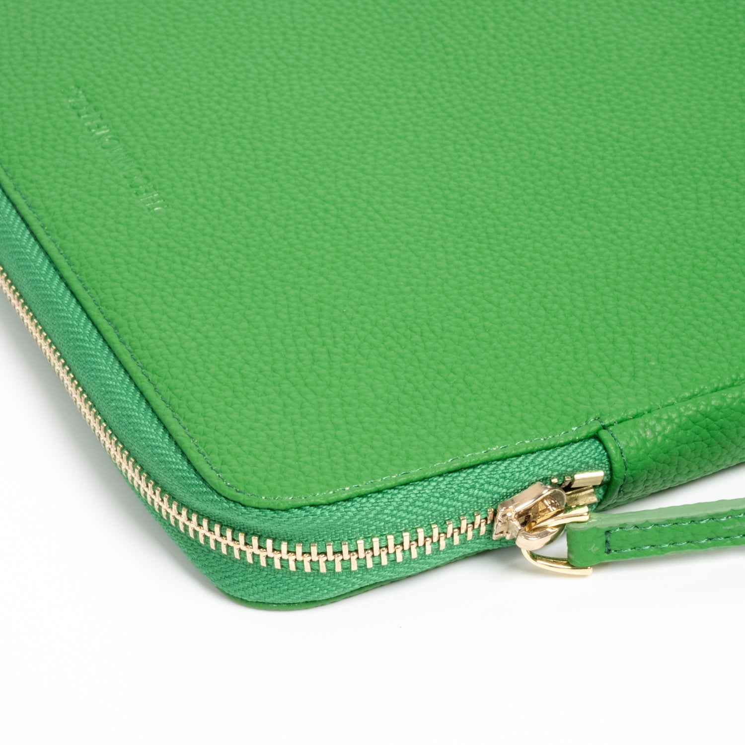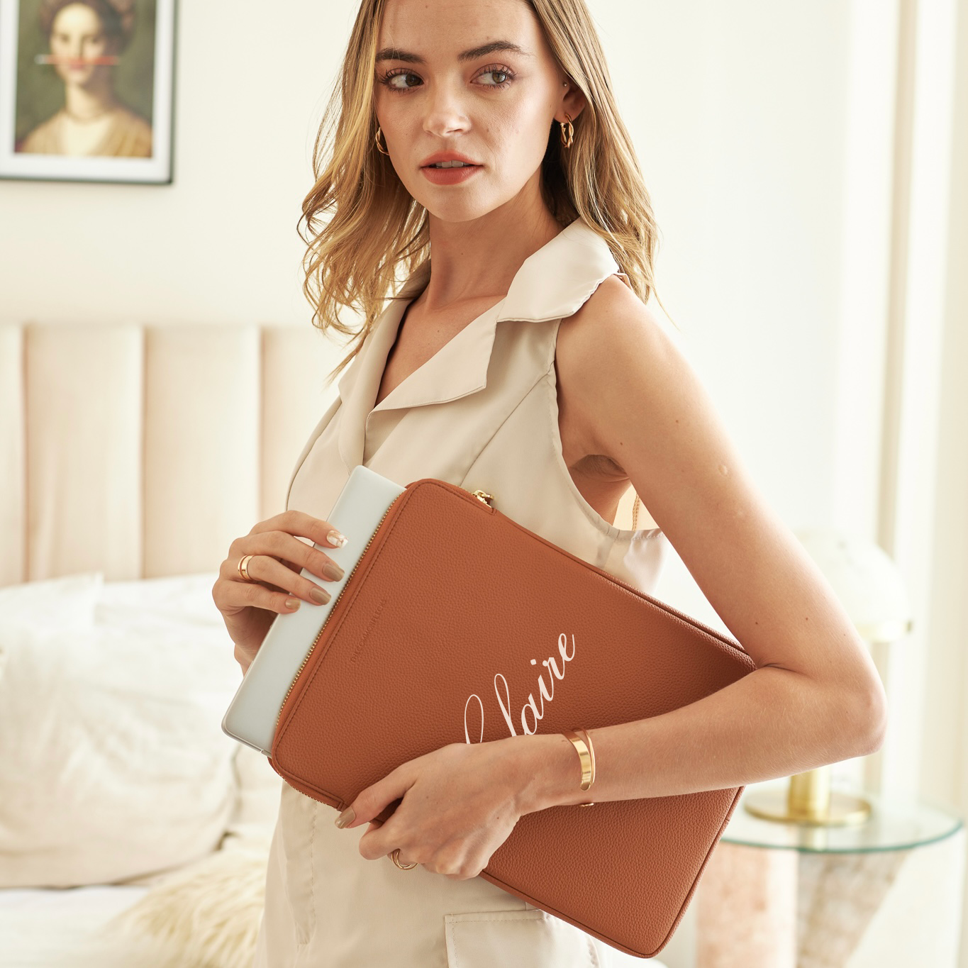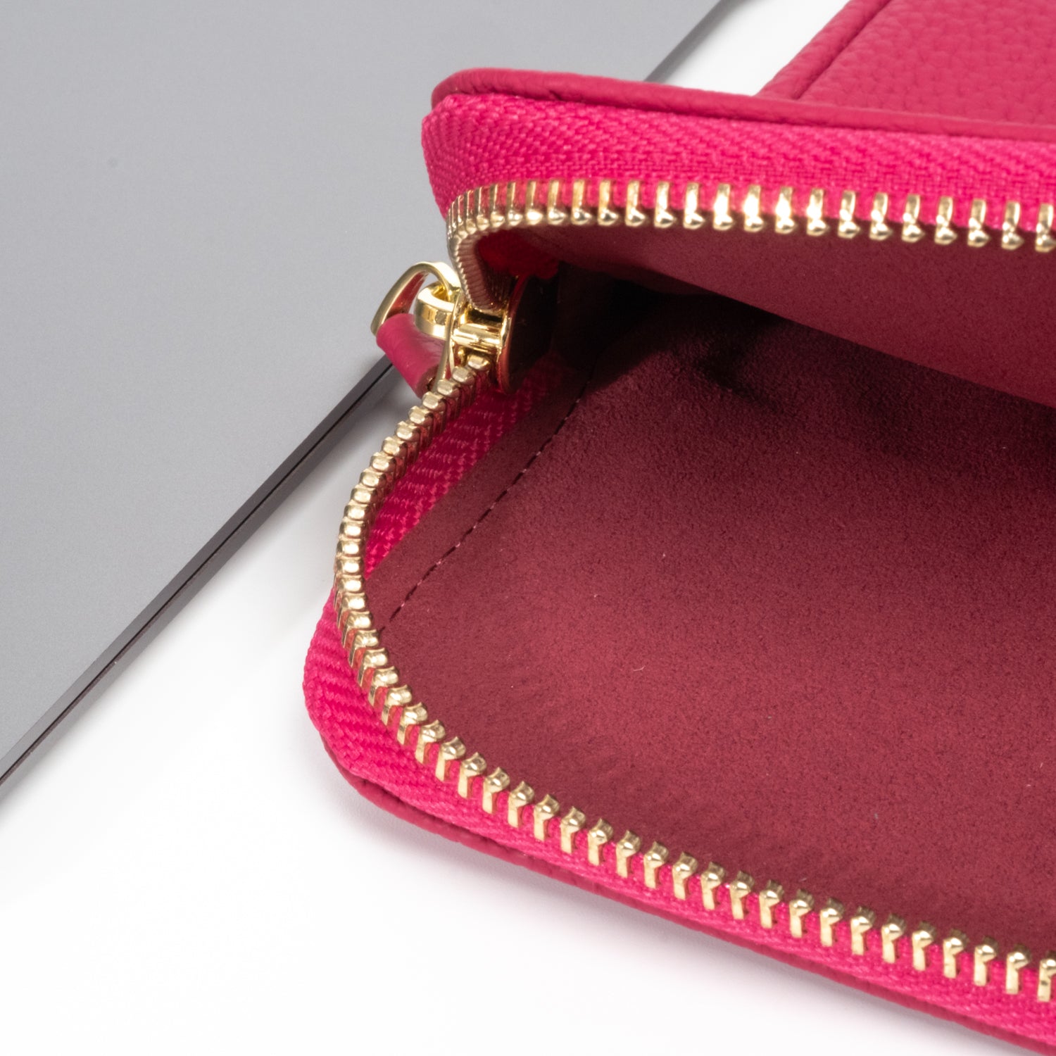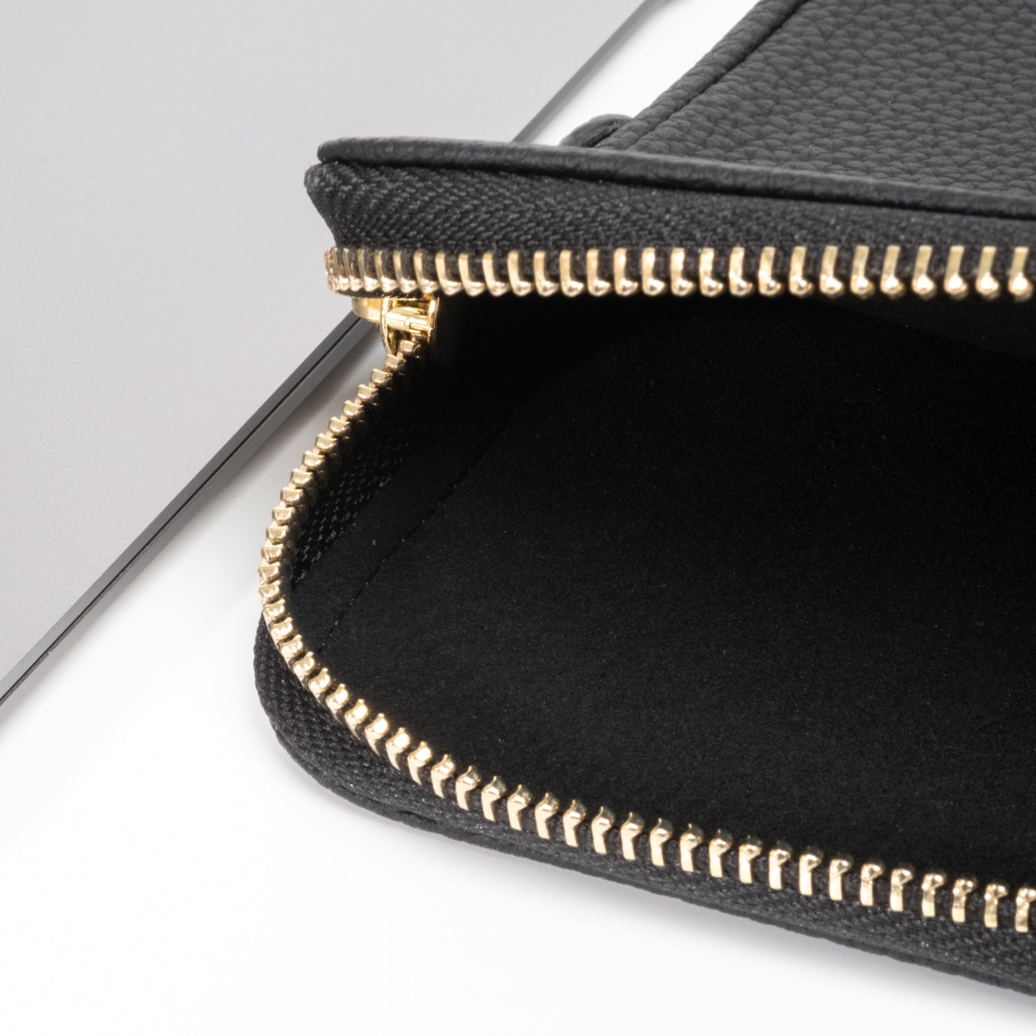 - Secure luxurious light gold hardware and padded leather zipper pull